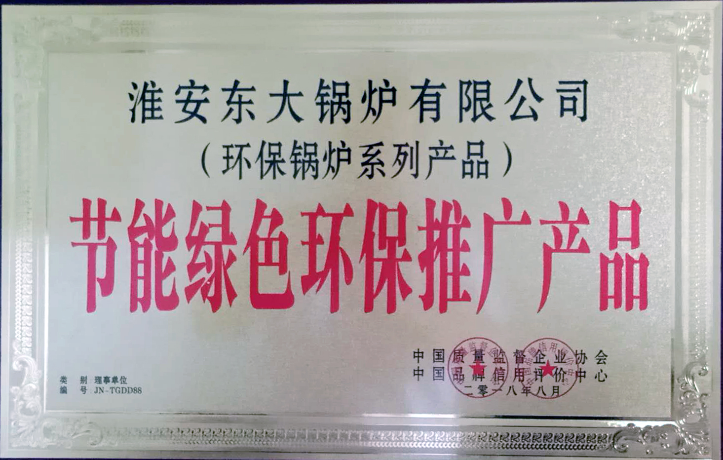 經(jīng)過淮安東大鍋爐有限公司全體員工的不斷努力,企業(yè)產(chǎn)品不斷創(chuàng)新,產(chǎn)品榮獲“節(jié)能綠色環(huán)保推廣產(chǎn)品”榮譽(yù)稱號(hào)!